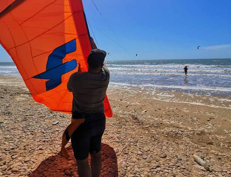 La première étape est d’apprendre à faire du kite avec une planche de surf pour être à l’aise strapless. Le coach vous aide à comprendre et trouver votre équilibre sans les straps.